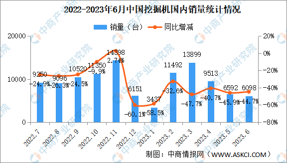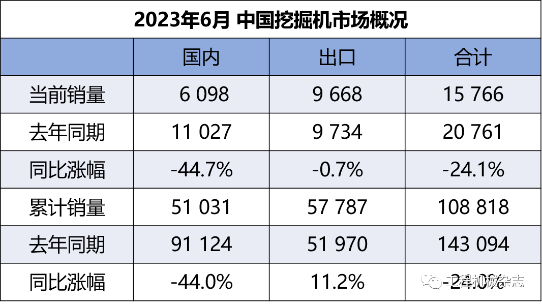 据中国工程机械工业协会对挖掘机主要制造企业统计,2023年6月销售各类挖掘机15766台,同比下降24.1%,其中国内6098台,同比下降44.7%;出口9668台,同比下降0.68%。2023年1-6月,共销售挖掘机108818台,同比下降24%;…......