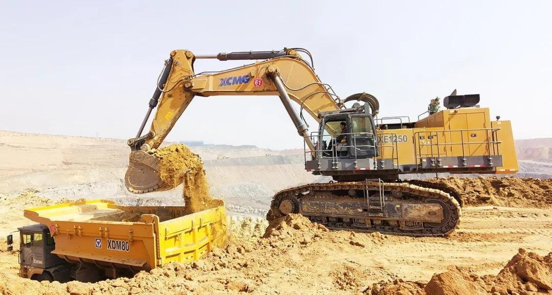 徐工XE1250矿用挖掘机&XDM80矿车在内蒙古矿区施工图