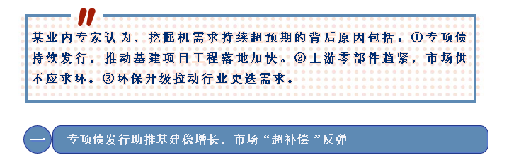 当前,我国疫情防控阻击战取得重大战略成果,工程机械产业链上下游各企业复工复产有力推进,加之基建投资的赶工需求,拉动了对挖掘机等工程机械设备的需求。