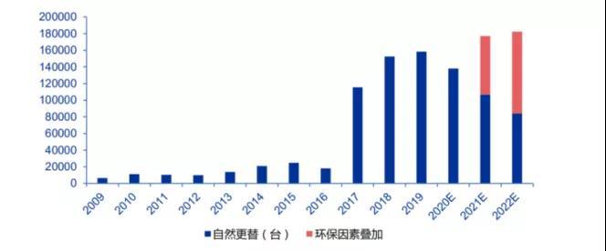 预计2020-2022年国内江南手机网页版销量中,更替需求分别为13.80万台、17.71万台、18.24万台,2021-2012年占比高达30%、50%。